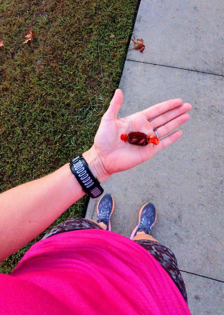 - During a speed workout: I carry a chew in my pocket and have it right at the end of my warm up.